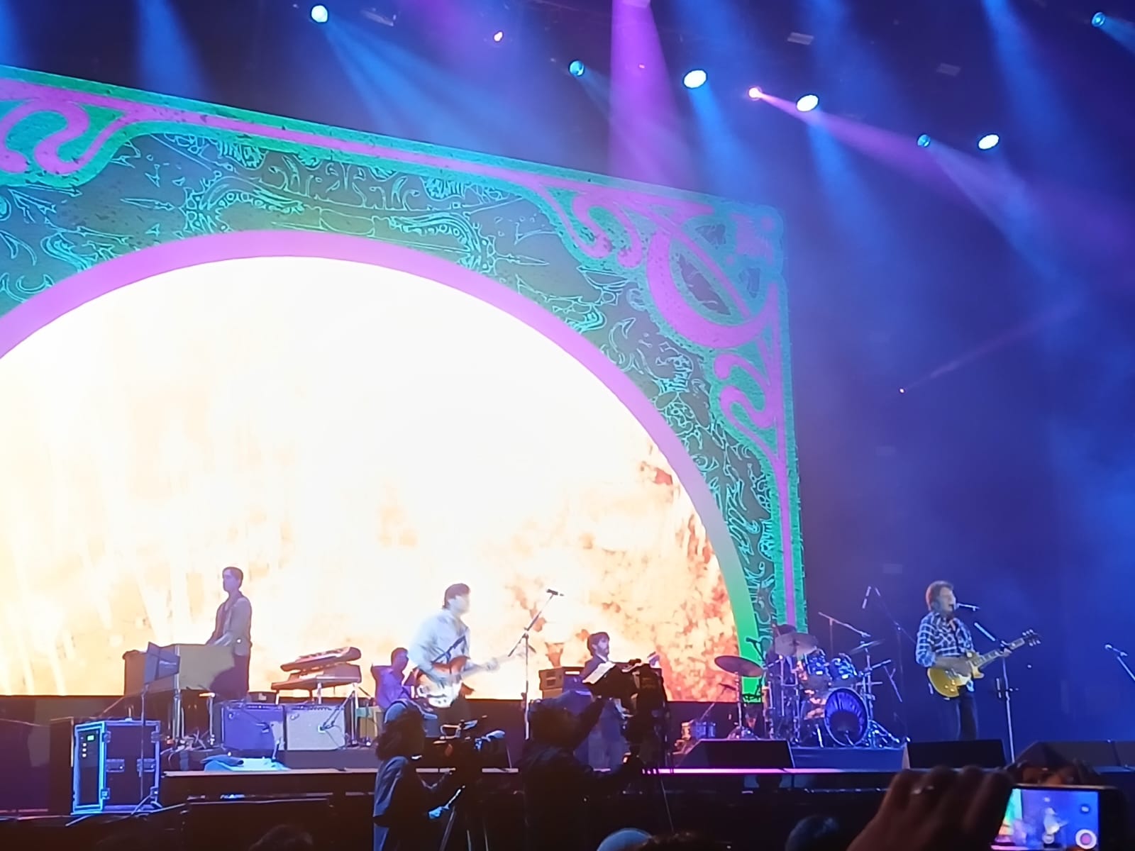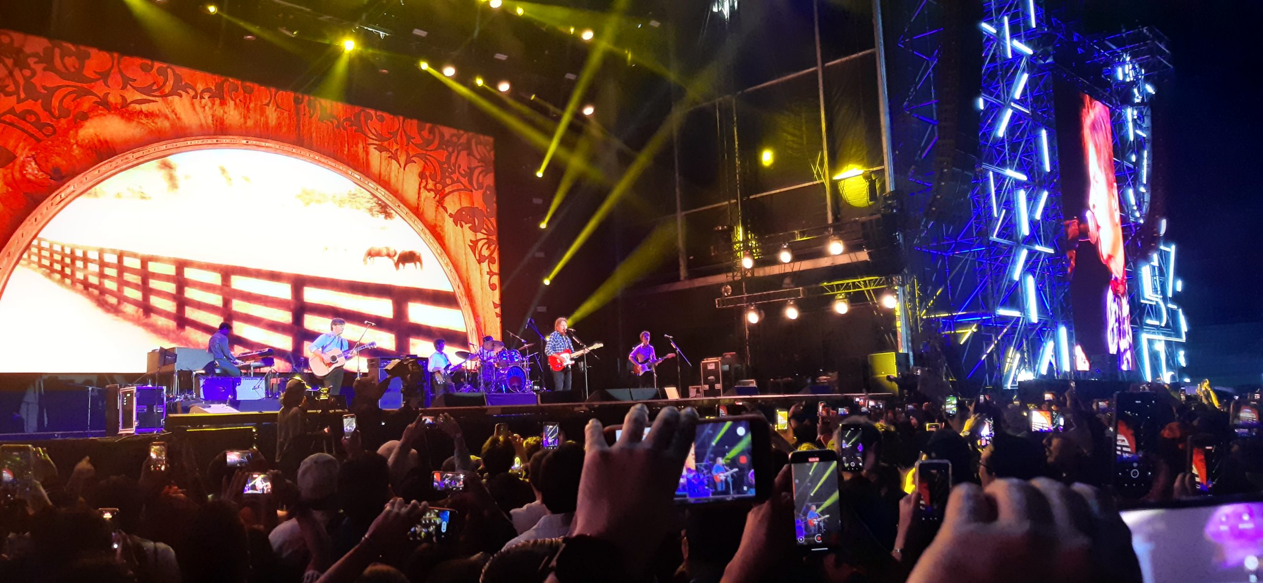Sobre sus hombros John Fogerty lleva el peso de una historia musical que abarca desde su breve paso por Creedence Clearwater Revival (con siete álbumes de estudio durante los años de 1968 a 1972) y por supuesto con una carrera como solista que abarca 11 discos de estudio. Alrededor de las 8:30 de la noche las luces se apagaron en el escenario denominado Amazon, colocado en un espacio a un costado del Estadio GNP. Previo al show se proyectó un video en donde el artista nos cuenta la larga batalla legal que tuvo con Fantasy Records para recuperar los derechos de las canciones que escribió durante el período con Creedence Clearwater Revival, de donde no obtenía ningún centavo por su comercialización y además ser demandado por presuntos plagios a canciones que son de autoría. Al ganar el juicio publicó en 2025 el álbum Legacy: The Creedence Clearwater Revival Years (John´s Versions), en donde sus hijos lo acompañaron en las sesiones de grabación y por supuesto están a su lado en sus presentaciones en vivo.