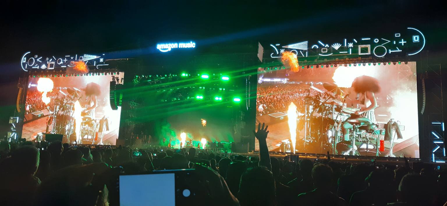 La historia musical de Lenny Kravitz continua sobre el escenario que se ilumina con luces multicolores, incluso se llena de fuego con llamaradas que se expulsan desde los costados y del centro de la tarima, dentro de otra canción nueva llamada Paralyzed, todo un espectáculo visual que sorprende a propios y extraños. El tiempo avanza y toca dos canciones de su quinto álbum, 5 (1998), I Belong To You y Fly Away, las cuales también son de las favoritas de sus seguidores y muchos las cantan a todo pulmón dentro del estadio. Kravitz sabe que cuenta con un tiempo limitado para su presentación, por lo que aprovecha cada instante para mostrar su arte convertido en sonidos que nos hacen brincar, corear las canciones y nos llenan de esa alegría que genera el rock.